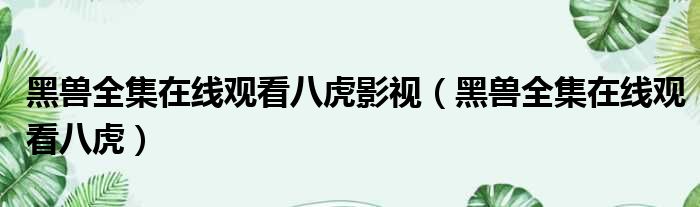 黑兽全集在线观看八虎影视(黑兽全集在线观看八虎)