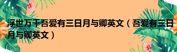 浮世万千吾爱有三日月与卿英文(吾爱有三日月与卿英文)