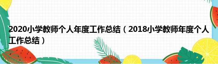 2020小学教师个人年度工作总结(2018小学教师年度个人工作总结)