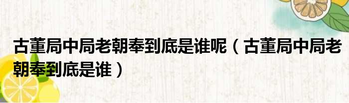 大家好,小东方来为大家解答以上的问题。古董局中局老朝奉到底是谁呢,古董局中局老朝奉到底是谁这个很多人还不知道,现在让我们一起来看看吧!