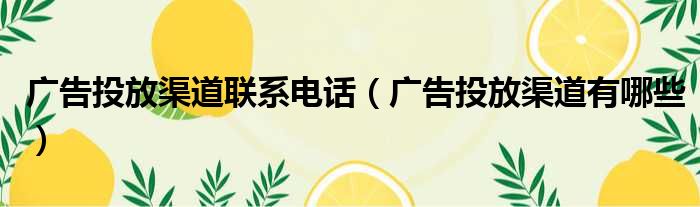 广告投放渠道联系电话(广告投放渠道有哪些)