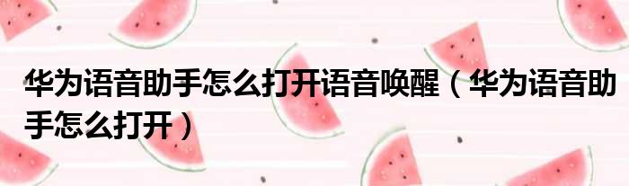 华为语音助手怎么打开语音唤醒(华为语音助手怎么打开)