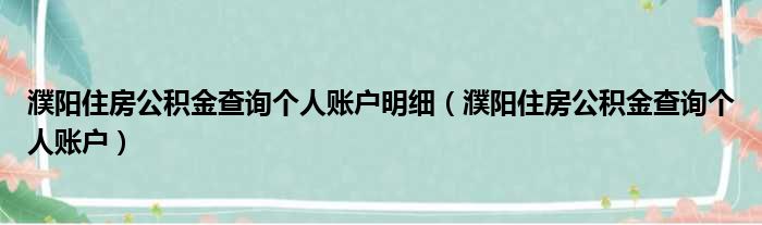 濮阳住房公积金查询个人账户明细(濮阳住房公积金查询个人账户)