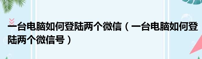 一台电脑如何登陆两个微信(一台电脑如何登陆两个微信号)