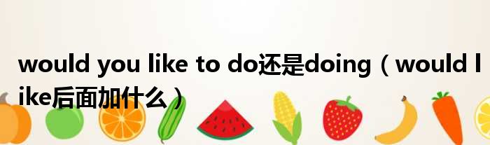 大家好,小东方来为大家解答以上的问题。would you like to do还是doing,would like后面加什么这个很多人还不知道,现在让我们一起来看看吧!