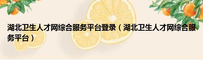 湖北卫生人才网综合服务平台登录(湖北卫生人才网综合服务平台)