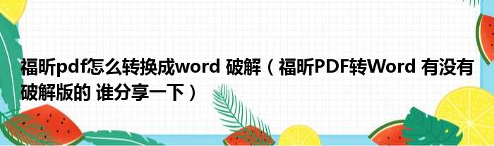 福昕pdf怎么转换成word 破解(福昕PDF转Word 有没有破解版的 谁分享一下)