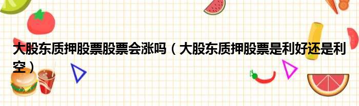 大股东质押股票股票会涨吗(大股东质押股票是利好还是利空)