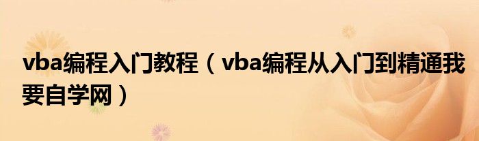 vba编程入门教程(vba编程从入门到精通我要自学网)