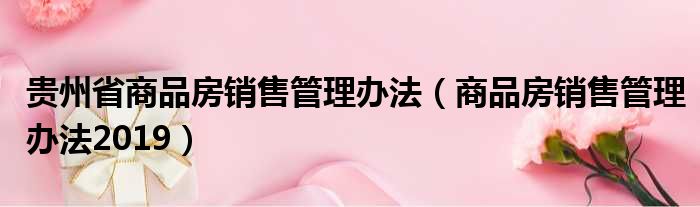 贵州省商品房销售管理办法(商品房销售管理办法2019)