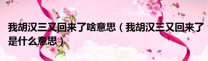 我胡汉三又回来了啥意思(我胡汉三又回来了是什么意思)