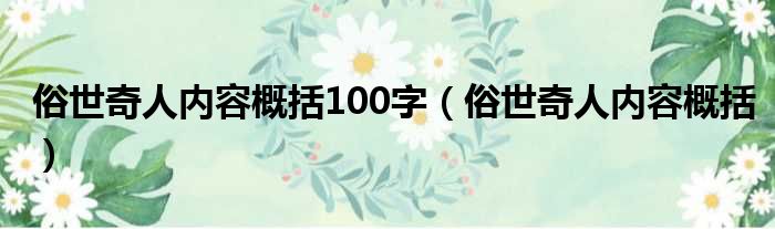 俗世奇人内容概括100字(俗世奇人内容概括)