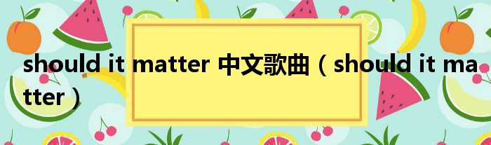 should it matter 中文歌曲(should it matter)
