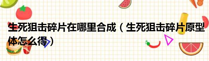 大家好,小东方来为大家解答以上的问题。生死狙击碎片在哪里合成,生死狙击碎片原型体怎么得这个很多人还不知道,现在让我们一起来看看吧!