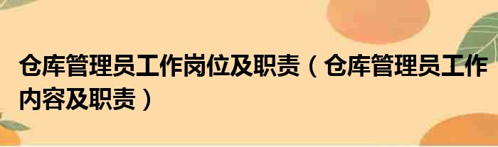 仓库管理员工作岗位及职责(仓库管理员工作内容及职责)