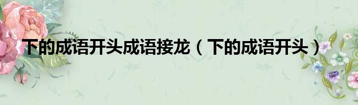 大家好,小东方来为大家解答以上的问题。下的成语开头成语接龙,下的成语开头这个很多人还不知道,现在让我们一起来看看吧!