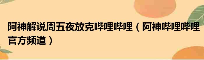 阿神解说周五夜放克哔哩哔哩(阿神哔哩哔哩官方频道)