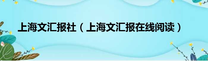 大家好,小东方来为大家解答以上的问题。上海文汇报社,上海文汇报在线阅读这个很多人还不知道,现在让我们一起来看看吧!