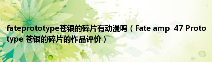 大家好,小东方来为大家解答以上的问题。fateprototype苍银的碎片有动漫吗,Fate amp 47 Prototype 苍银的碎片的作品评价这个很多人还不知道,现在让我们一起来看看吧!
