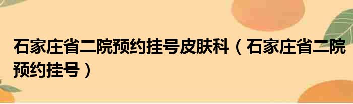 石家庄省二院预约挂号皮肤科(石家庄省二院预约挂号)