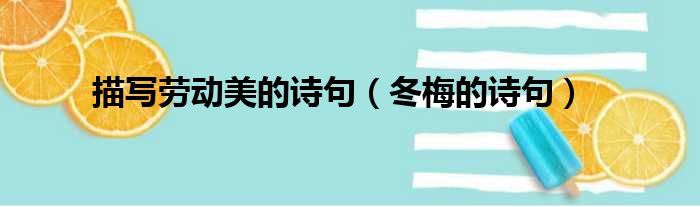 大家好,小东方来为大家解答以上的问题。描写劳动美的诗句,冬梅的诗句这个很多人还不知道,现在让我们一起来看看吧!
