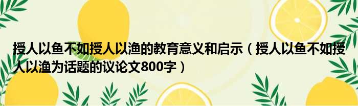 授人以鱼不如授人以渔的教育意义和启示(授人以鱼不如授人以渔为话题的议论文800字)