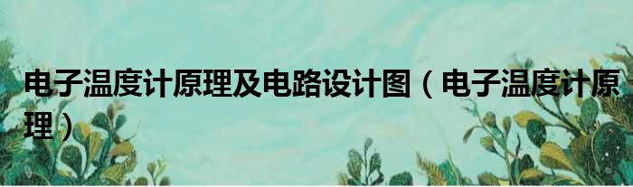 大家好,小东方来为大家解答以上的问题。电子温度计原理及电路设计图,电子温度计原理这个很多人还不知道,现在让我们一起来看看吧!