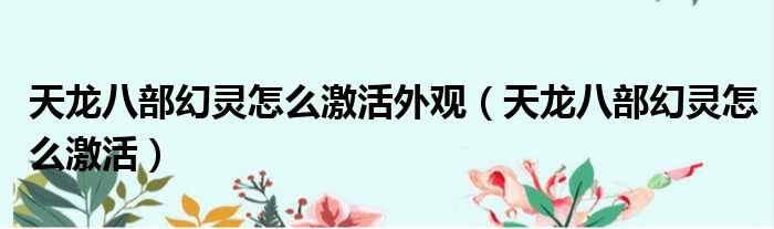天龙八部幻灵怎么激活外观(天龙八部幻灵怎么激活)