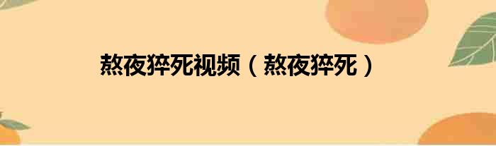 大家好,小东方来为大家解答以上的问题。熬夜猝死视频,熬夜猝死这个很多人还不知道,现在让我们一起来看看吧!