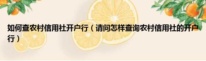 如何查农村信用社开户行(请问怎样查询农村信用社的开户行)