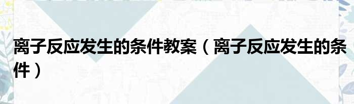 大家好,小东方来为大家解答以上的问题。离子反应发生的条件教案,离子反应发生的条件这个很多人还不知道,现在让我们一起来看看吧!