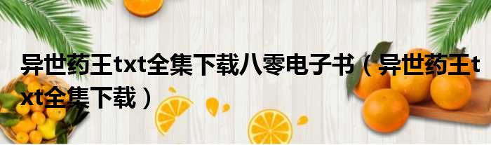 异世药王txt全集下载八零电子书(异世药王txt全集下载)