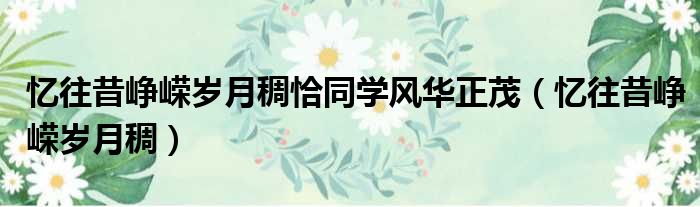 忆往昔峥嵘岁月稠恰同学风华正茂(忆往昔峥嵘岁月稠)