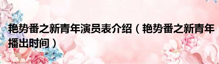 大家好,小东方来为大家解答以上的问题。艳势番之新青年演员表介绍,艳势番之新青年播出时间这个很多人还不知道,现在让我们一起来看看吧!
