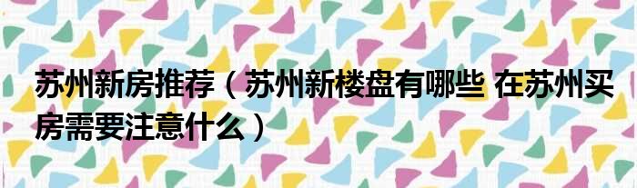 苏州新房推荐(苏州新楼盘有哪些 在苏州买房需要注意什么)