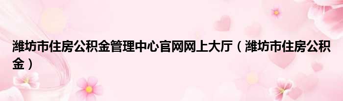 潍坊市住房公积金管理中心官网网上大厅(潍坊市住房公积金)