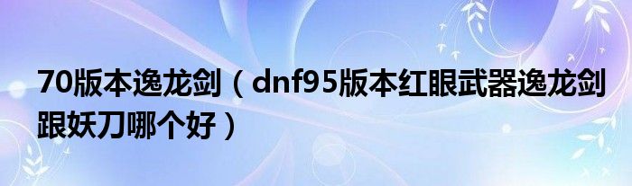 70版本逸龙剑(dnf95版本红眼武器逸龙剑跟妖刀哪个好)