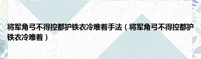将军角弓不得控都护铁衣冷难着手法(将军角弓不得控都护铁衣冷难着)