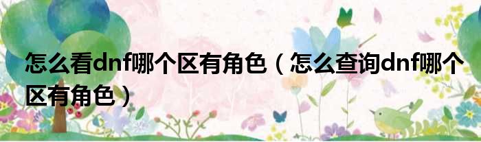 怎么看dnf哪个区有角色(怎么查询dnf哪个区有角色)
