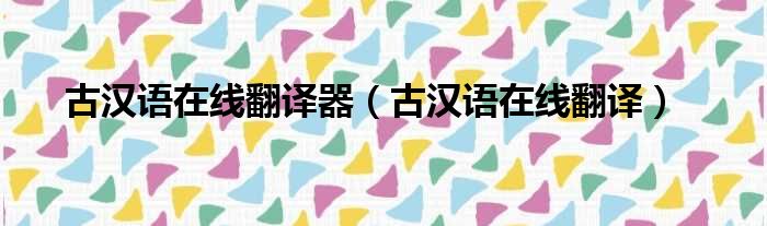 古汉语在线翻译器(古汉语在线翻译)