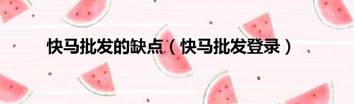 大家好,小东方来为大家解答以上的问题。快马批发的缺点,快马批发登录这个很多人还不知道,现在让我们一起来看看吧!