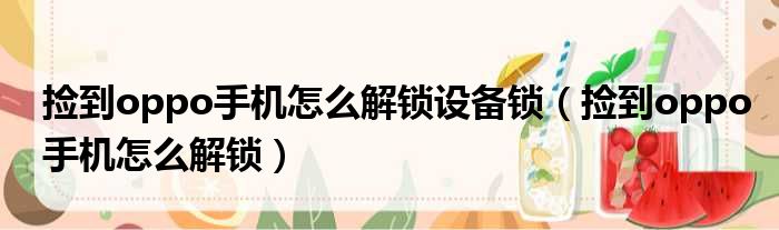 捡到oppo手机怎么解锁设备锁(捡到oppo手机怎么解锁)