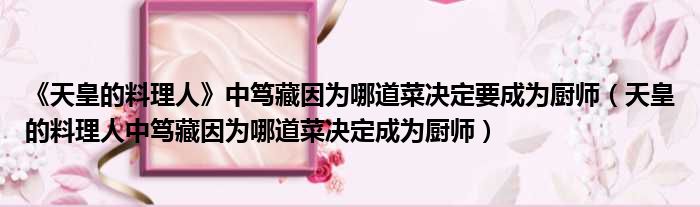 《天皇的料理人》中笃藏因为哪道菜决定要成为厨师(天皇的料理人中笃藏因为哪道菜决定成为厨师)