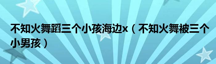 大家好,小东方来为大家解答以上的问题。不知火舞蹈三个小孩海边x,不知火舞被三个小男孩这个很多人还不知道,现在让我们一起来看看吧!