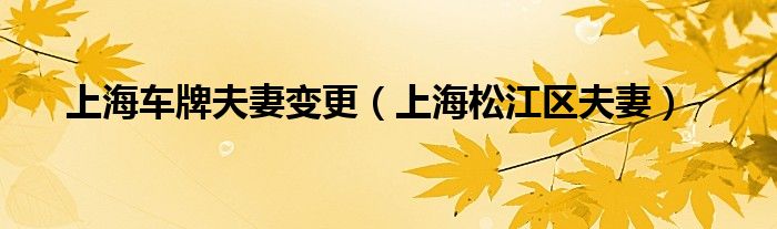 大家好,小东方来为大家解答以上的问题。上海车牌夫妻变更,上海松江区夫妻这个很多人还不知道,现在让我们一起来看看吧!