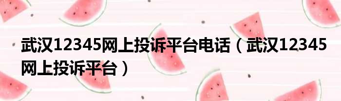武汉12345网上投诉平台电话(武汉12345网上投诉平台)
