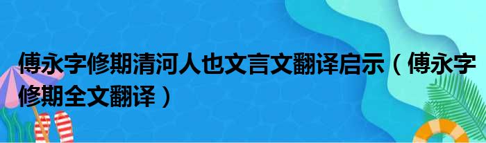 大家好,小东方来为大家解答以上的问题。傅永字修期清河人也文言文翻译启示,傅永字修期全文翻译这个很多人还不知道,现在让我们一起来看看吧!
