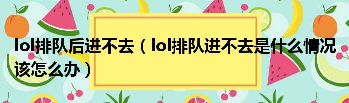 lol排队后进不去(lol排队进不去是什么情况 该怎么办)