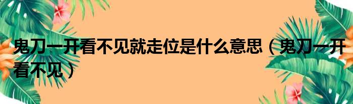 鬼刀一开看不见就走位是什么意思(鬼刀一开看不见)