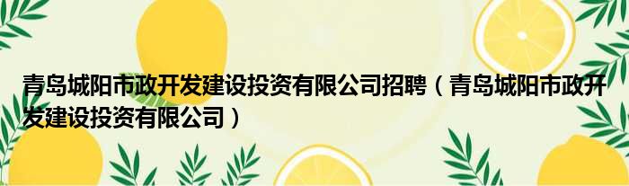 青岛城阳市政开发建设投资有限公司招聘(青岛城阳市政开发建设投资有限公司)